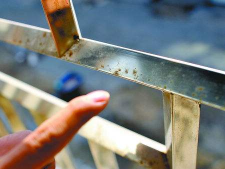 7.受表面保護用粘膜的污染。使304不銹鋼管建材受污染、生銹的原因有很多種,然而大致上,均是受大氣中浮游鐵粉或有害氣體中的成分,因附著、堆積、以及海風中所含鹽分的附著所引起的。